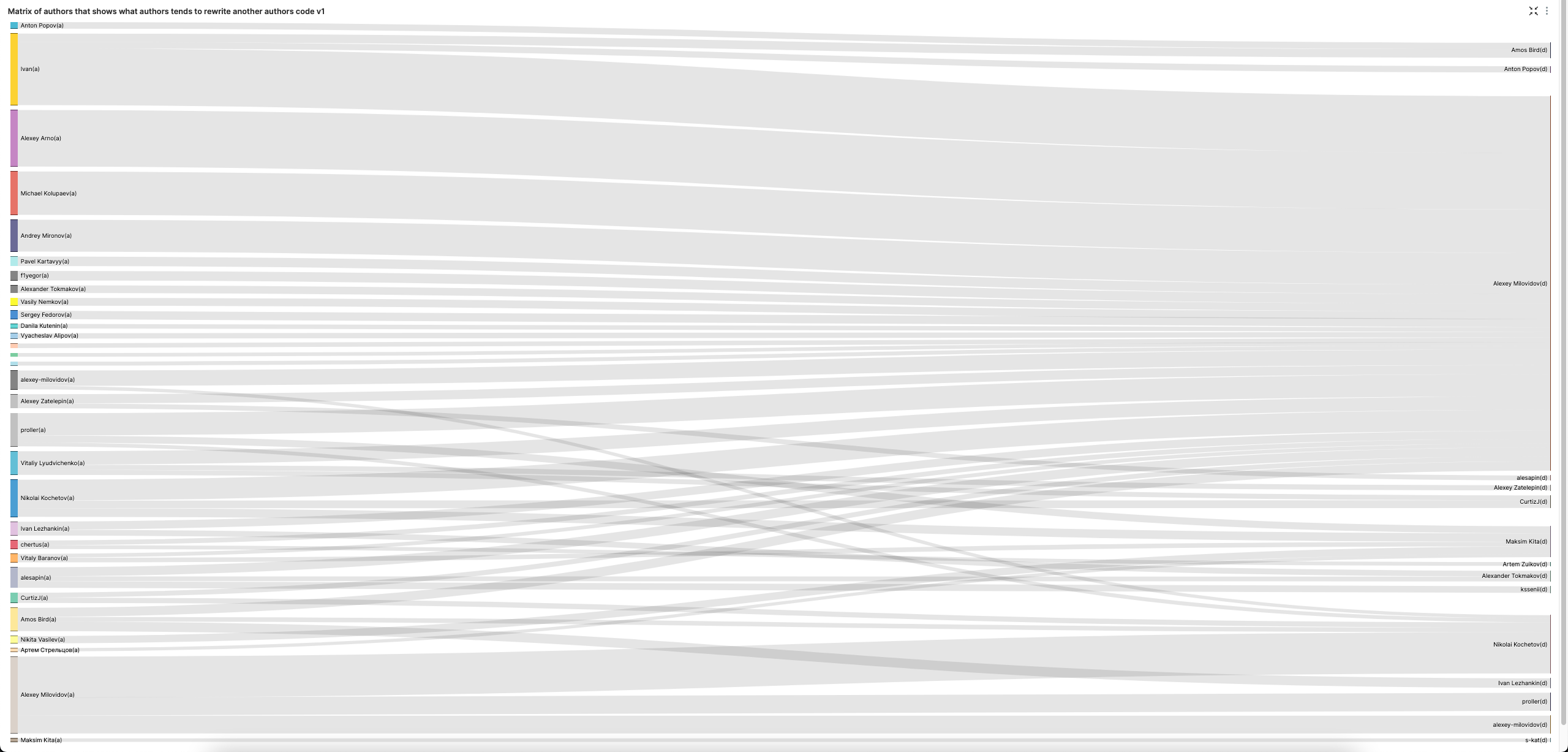 commits- commits with statistics.file_changes- files changed in every commit with the info about the change and statistics.line_changes- every changed line in every changed file in every commit with full info about the line and the information about the previous change of this line.